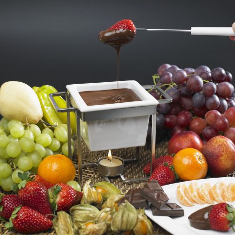 Fondue is both elegant and easy to make. And it is perfect for so many occasions: a romantic evening, a fun ladies night, or an enjoyable dessert. I would recommend that you use a chocolate fondue set (a great gift), but you can also melt your chocolate by poaching it on the stove. Remember to oil the bowls first, as this will ease the cleaning process a great deal.